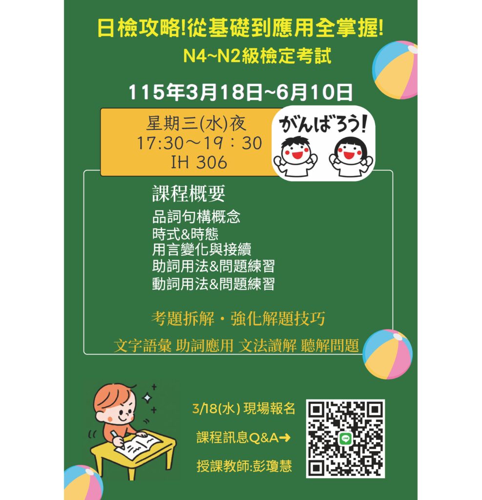 招生對象:有意參加日語能力檢定考試或加強日語能力者。